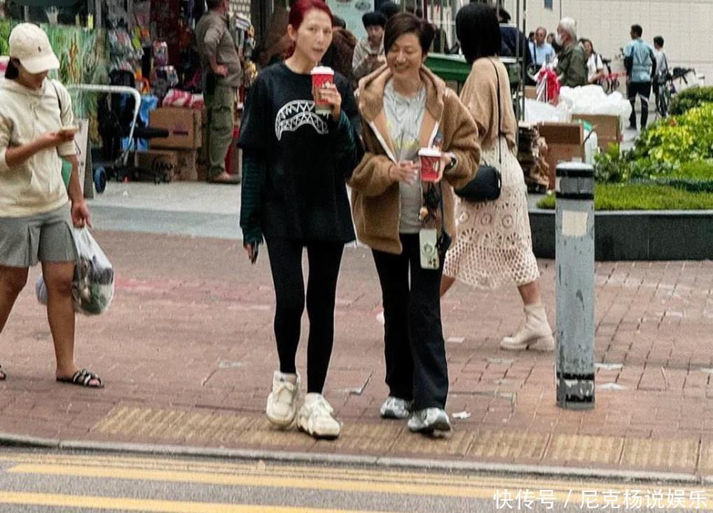 12月3日,有网友分享了在石门街头偶遇蔡少芬与她的闺蜜陈法蓉的照片与短讯。照片中,两人边走边聊,神态轻松自若,仿佛街角的咖啡店就是她们的固定约会点。蔡少芬扎着一头醒目的红色长发,肤色在镜头下白皙透亮;当日她以黑色上衣配黑色打底裤、白色运动鞋的休闲造型现身,简单利落又不失时髦感,身形与气质都显露出成熟女性的从容。尽管已有52岁,网友们却纷纷称赞她“保养得好”“依旧有审美”。